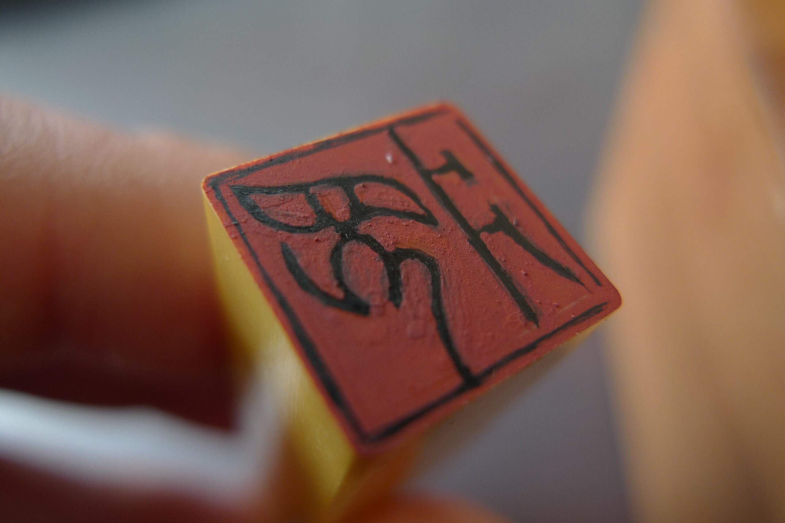 焼く前の陶器におす印なので深めに彫り込んでます。