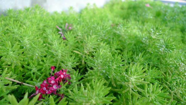 この植物は明るい緑なので、アクセントに少しだけ濃ゆい緑の植物を植えたいと思います。