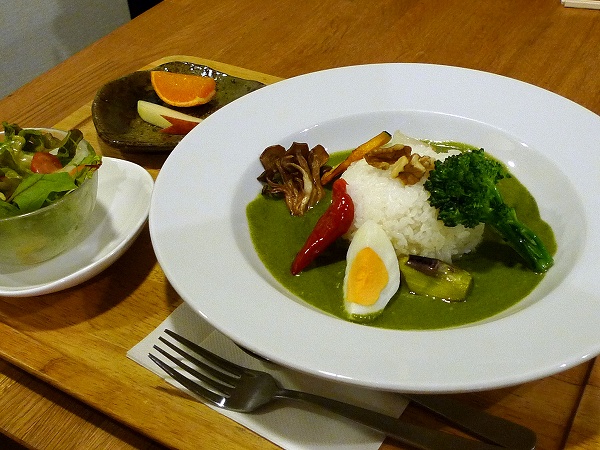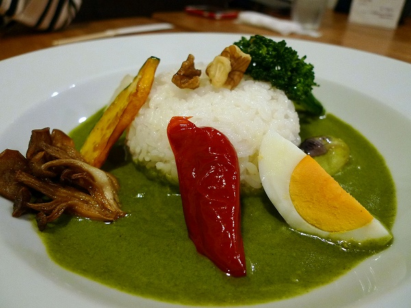 グリーンカレーは緑ではないのですが、ホウレン草を入れて色づけされてるそうです。
