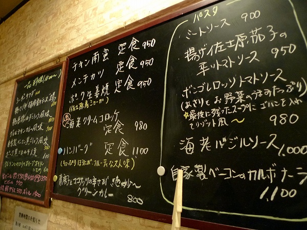 メニュー表もありますが、黒板に手書きでメニューを書かれてます。