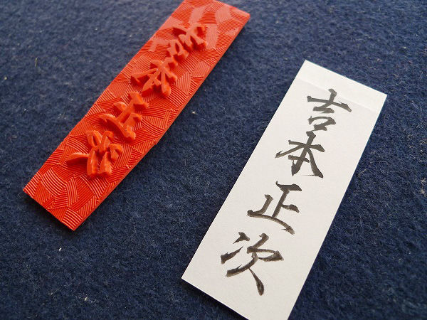 熨斗用の氏名ゴム印として御注文を頂き、文字は既成のパソコン書体ではなく私の手書きの文字を使ったゴム印で御注文を頂きました。