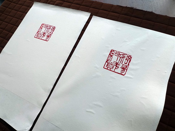 これから落款を書いて額に収まる寸法に裁断して額に納めます。