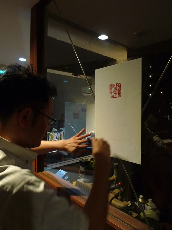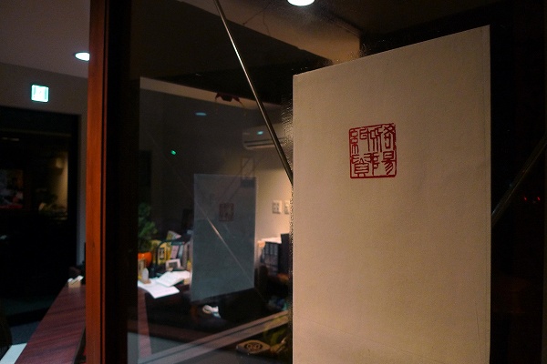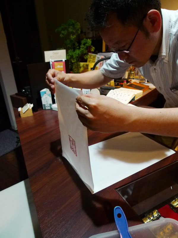 角井先生から送られてきた印稿をもとに彫り上げた印を印箋に捺して一日店内で乾かしました。