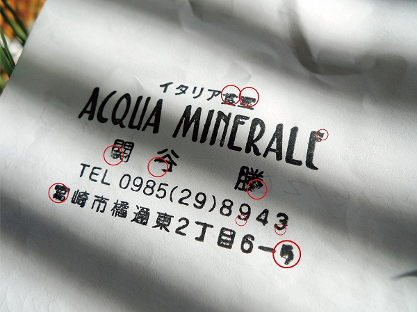 帰り際、関谷さんから「住所判のゴム印の文字がなくなって…」って話になり見てみると見事に溶けてます。