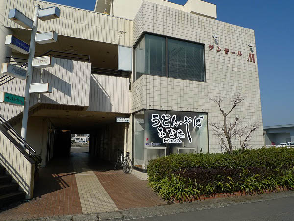 自分だったら屋号をもう少し小さ目で「うどん・そば」と離すかな。