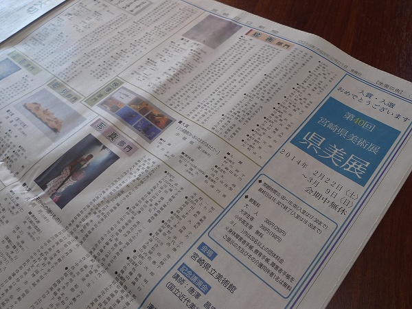 今朝の宮日新聞に大きく宮崎県美術展の記事が大きく載ってました。