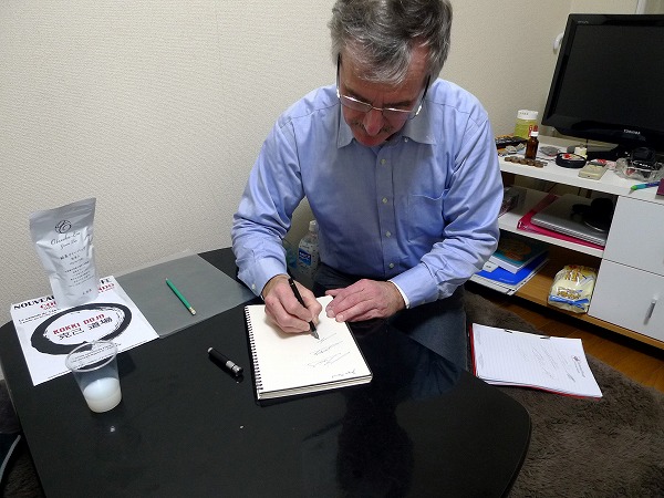 今回、ご友人が合気道の道場を開くので印章をプレゼントしたいとの事でご依頼が来ましたので、滞在しているジャックさんのアパートで商談となりました。私は英語が話せないので通訳をしてくださる方と同席です。