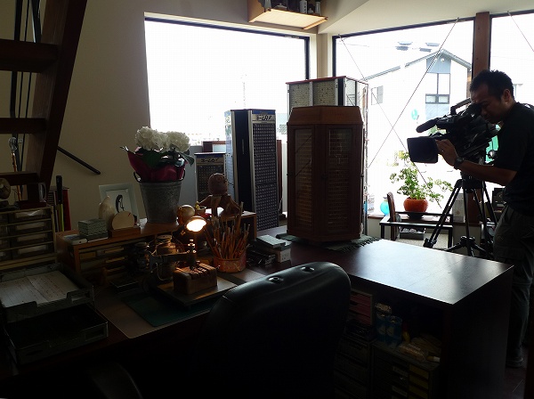 撮影では亡き父の机と、40年ほど愛用していた両手で持って扱う小野木式彫刻機などを撮られてました。