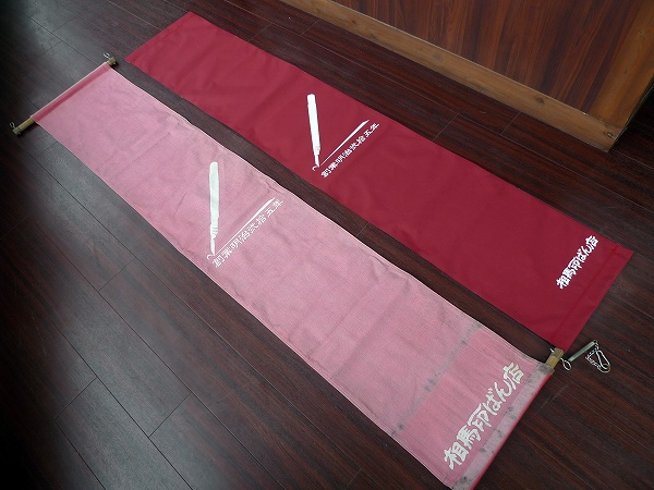 えんじ色の日よけ暖簾だったので日焼けして白っぽく色褪せてしまってました。
