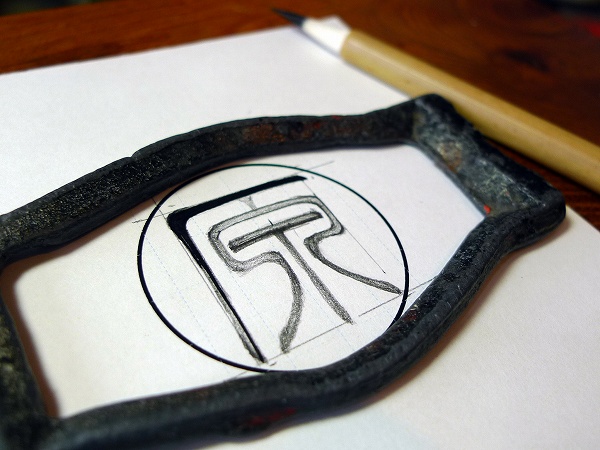 版下を書く際に父が使ってた鉛の文鎮があったよな~と思い父の道具を入れてる引き出しから取り出して使ってみました。