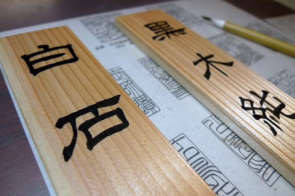 今週末に消防団幹部が機庫(消防車を置いてある待機所)を点検するとの事で木札が欲しいと連絡があったので、昨夜、書き上げました。 帰り際に機庫に持っていっても良かったのですが、部外者が勝手に入るのはと思い止めときました。
