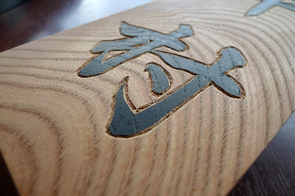 通常の墨は木目に沿ってにじみむので砥の粉を塗ってからになりますが、木簡墨は何もせずに塗っても滲みません。