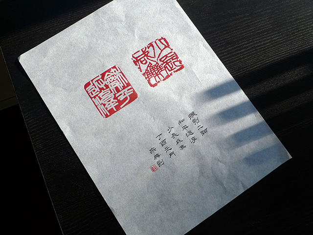 一時は諦めてましたが、助言を頂き、石をサンドペーパーで砥いで出た粉を作品の裏に擦り込み、その上から紙を敷いて重しを置いて一晩寝かせてました。