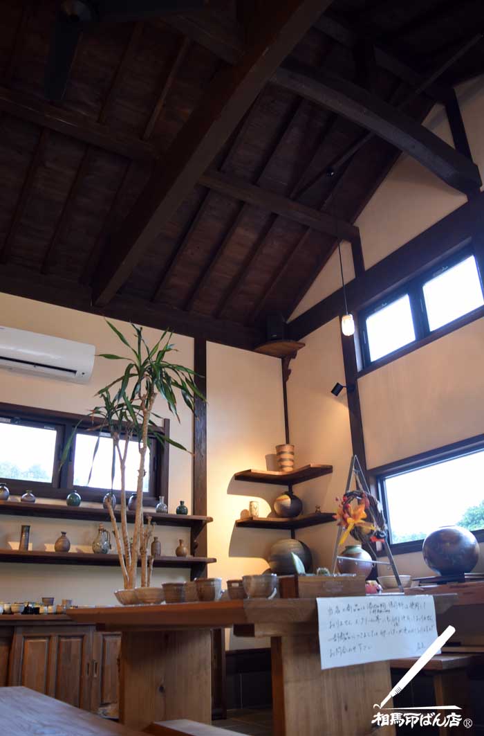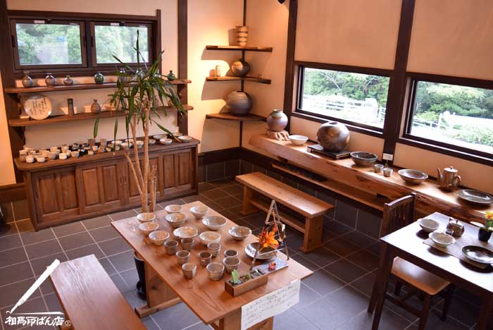 店内のテーブルやカウンターは陶器が空間を空けて上品に陳列されてありました。