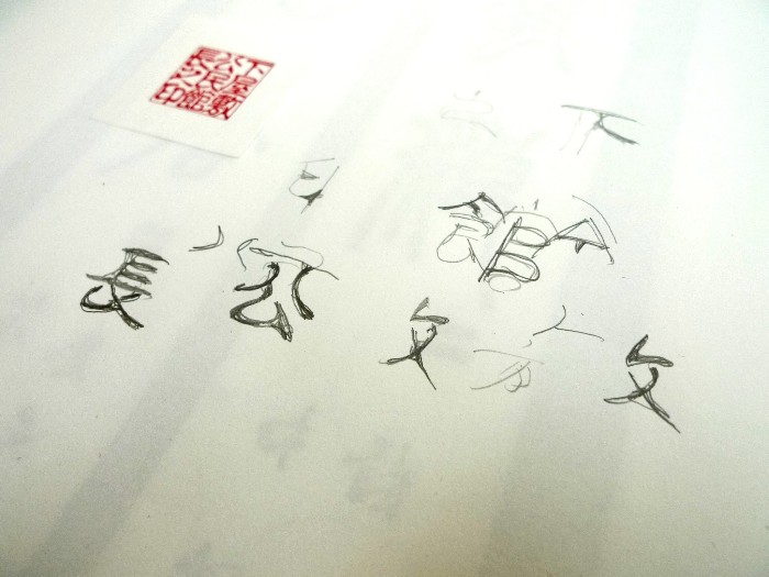 人の事ばかりではいかんので、今回は古印体を聞きたく作った角印の印影をもとに指導を受けました。ボクニョウの処理はこの形を頂きました。引き出しに収めて、次回から使っていきたいと思います。