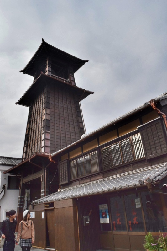 川越のシンボル「時の鐘」。 江戸時代の寛永に建てられ、何度も火災で消失するが再建されているようです。最近では耐震性の補強工事をされたとか。
