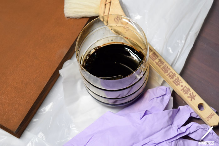 乾かした後に柿渋を塗ると書いてあるので塗ってみる。