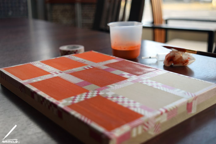 乾いたら、もう一度、朱液と墨汁の混合液をつくり直して2度塗りしました。