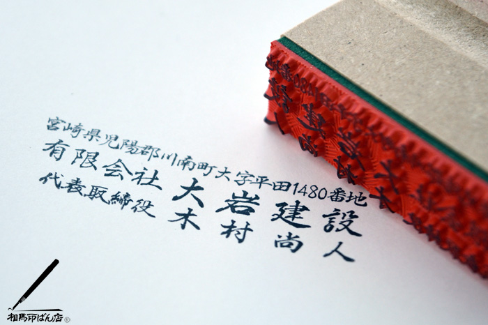 今回、社長就任の祝いで手書きの住所判と、冠婚葬祭の熨斗袋に捺す手書きのゴム印を作って贈らせて頂きました。