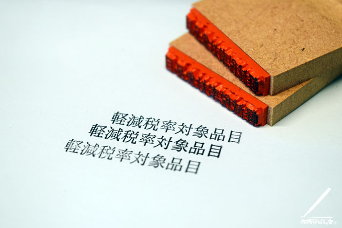 10%と8%の商品を扱っているお店では、領収証に「軽減税率対象品目」と記載しないと控除を受けられないとのことで「軽減税率対象品目」というゴム印が僅かですがご注文を頂いております。