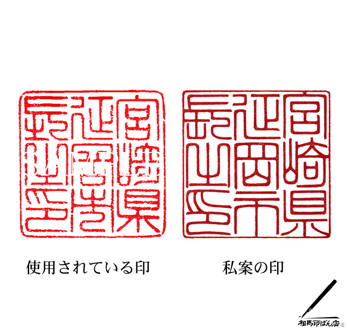 ・県が、現代の文字を小篆調にした判子屋さんの書体(印章新体)になっているので、「岡」「市」も印章新体で統一しました。