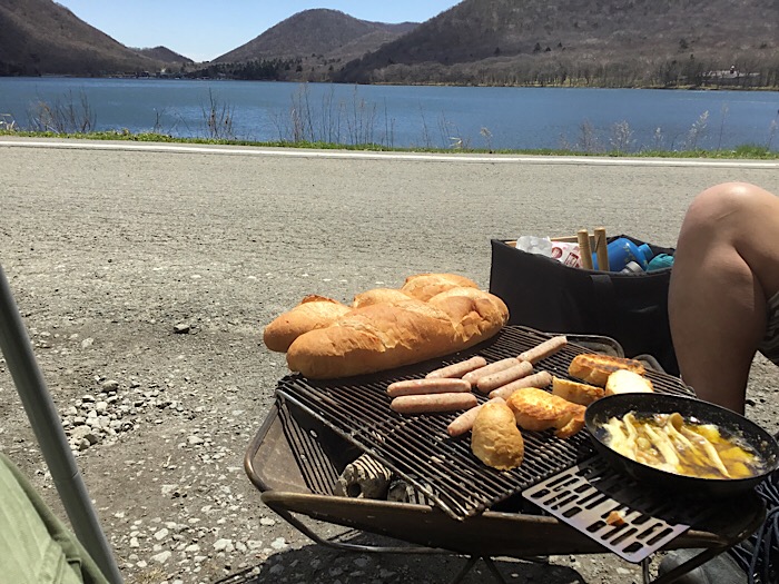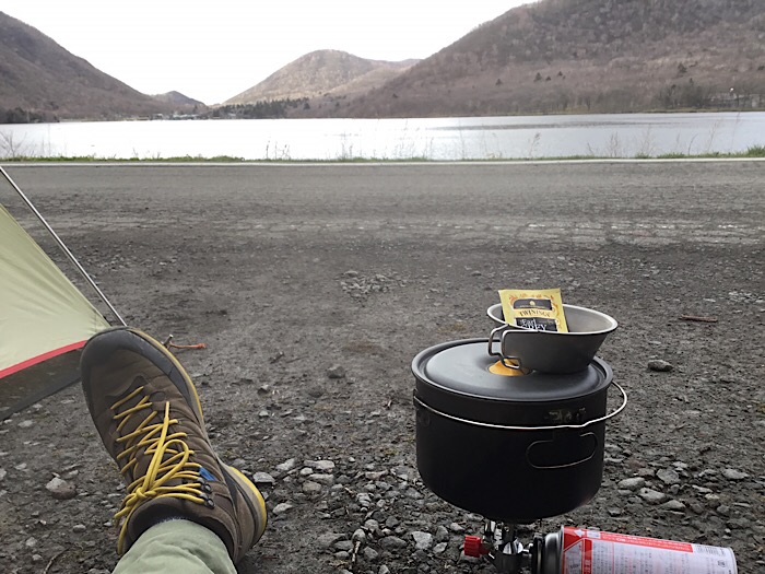 5月1日の夜10:30頃に赤城山の山頂にある県立赤城公園キャンプ場に到着。ちょうど雨も止み厳しい寒さではなく、テントを設営して就寝。