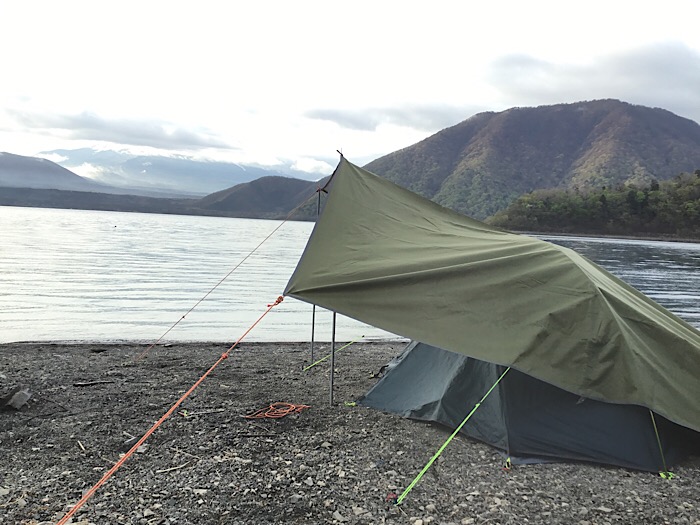 テントを張る場所も水辺のとこで満足!地盤が柔らかいのでタープを張るのにかなり苦労しました。