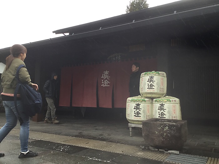 長野は枝垂桜が満開。その奥には真澄という日本酒の蔵元でした。