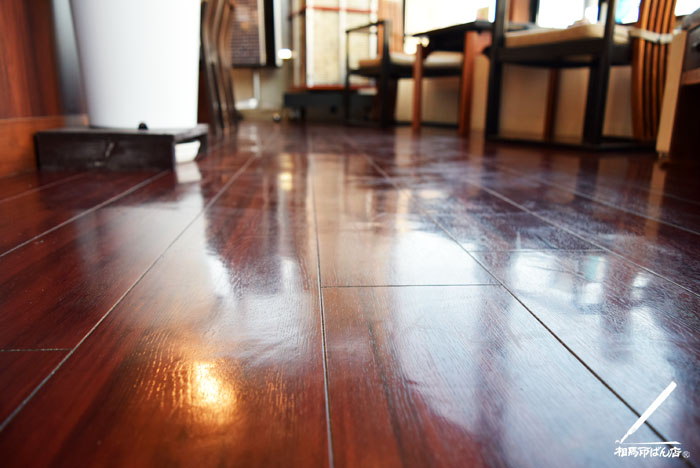 床もワックスを掛け光沢が戻り、掛けてみるとどんだけくすんでいたかが分かります。