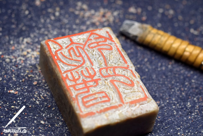 石材は寿山石。点てんと硬い部分があったり、ズバッと一気に印刀を走らせられる部分があったりする石でした。