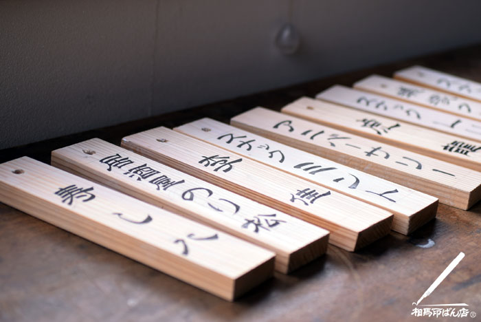 木札を筆で書く
