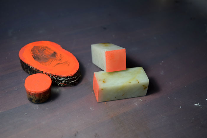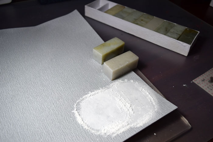 前回までは固い印材でしたが、今回は私が仕入れることにして貰って彫りやすい印材を準備しております。