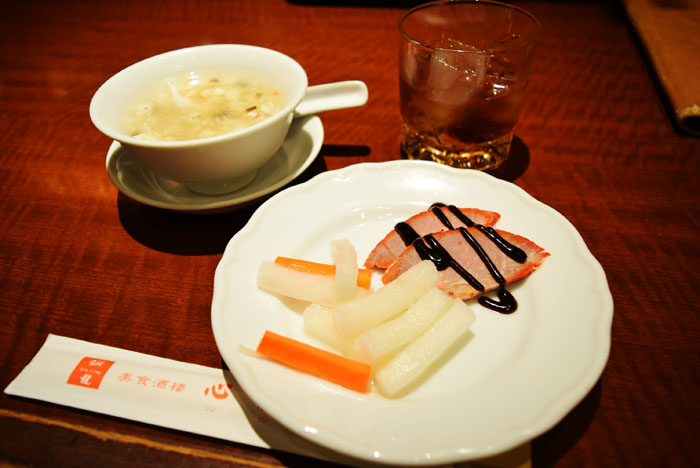 前菜、フカヒレのスープ、白麻婆豆腐が出てきました。