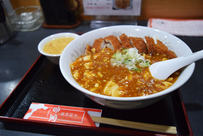 麻婆カツ丼は、餡かけが掛かってないのでカツがサクサクしてて、自分としては麻婆カツ丼の方が好きだな。