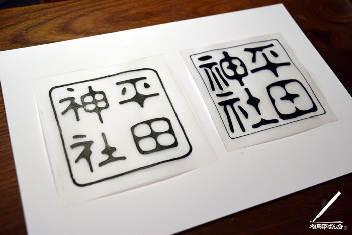 画像の左側は倭古印体、右側は古印体で書いてます。