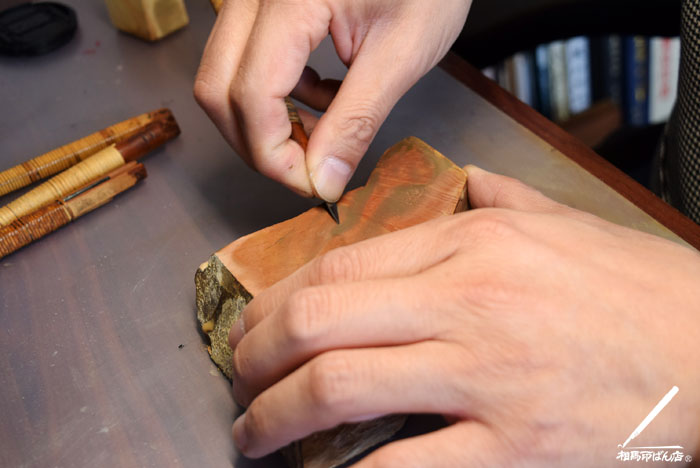 先週、従兄のお店“相馬印店”に寄った際に「ムネノリが印刀を研ぐ動画を見て研いだらおかしくなったじゃね~かぁ~!責任もって研ぎ直せ!www」と(笑)