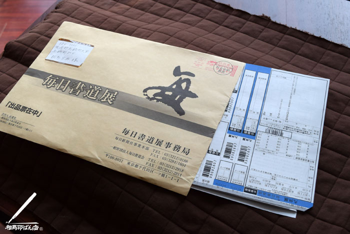 裏打ちとは、半紙のような薄い紙に捺印して落款を書き入れるので、厚紙に貼り合わせてシワなどをなくします。