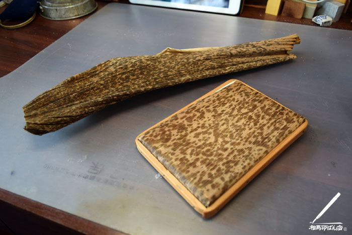 40~50分ほど漬け込んだ後に取り出して、タオルで拭いてからバレンの台座に貼り合わせます。