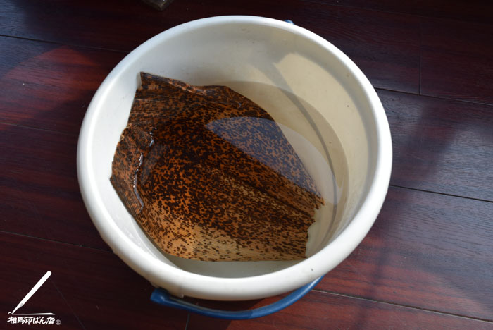 漬け込むと乾いた色から、水を吸い込むことで色が濃くなっていき竹の皮の香りが香ってきます。