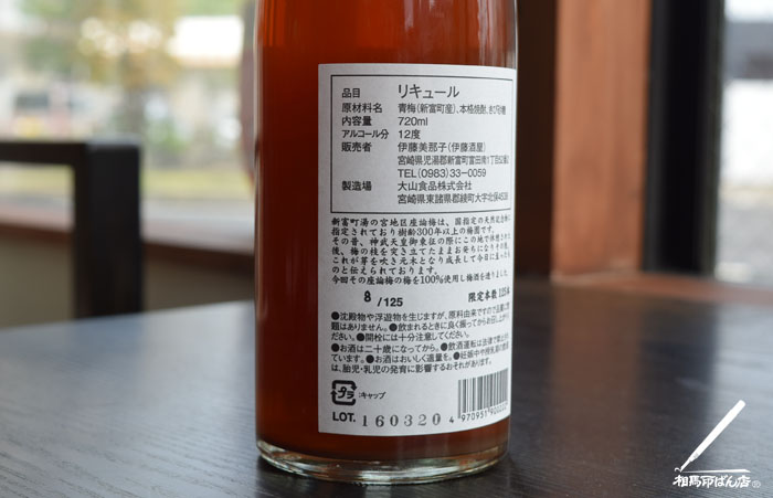 天然記念物に指定されている新富町の座論梅の梅から作った梅酒だそうです。