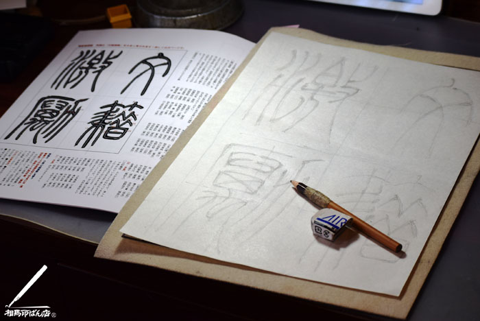 篆刻の作は2顆出来上がっているので、篆書を書き上げて早めに出品しようとしたが、困ったことにいつもの線質が出ない…。