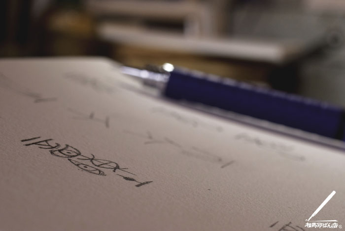 パッケージに使われる落款印の製作のご依頼を頂き、鉛筆を走らせております。