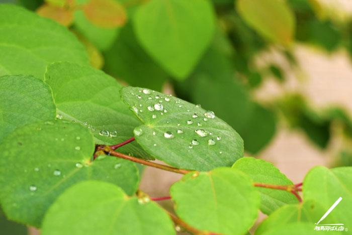 今朝は雨が上がり、庭の木々には雨露がのり、そこへ陽が射し込んでいたので撮ってみました。
