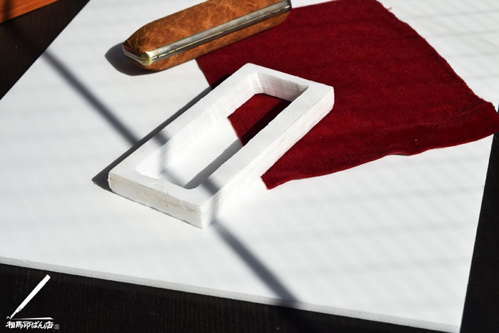 ただ、印章ケースを木箱に入れる際の台座は、5mm厚の発泡スチロールを3枚貼り合わせて、ニクロム線に電流を流してカットしていきます。