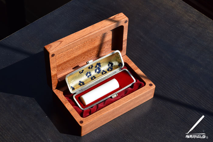 個人印の象牙(上上)、象牙(特上)は、印材も小さいので一回り小さい木製衣装ケースにお入れして納品させて頂いております。