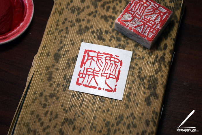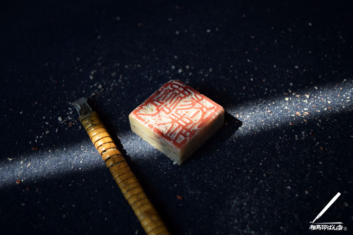 石材は、寿山石です。3ヶ所ほど硬い部分があって文字を崩してしまい修正しましたが、1時間以内に刻し上げました。