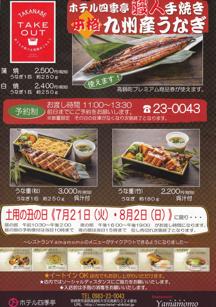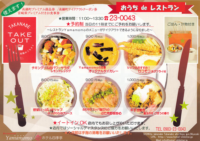 高鍋町プレミアム商品券、高鍋町テイクアウトクーポン券、宮崎県プレミアム付食事券(高鍋町)と全てが使えます。