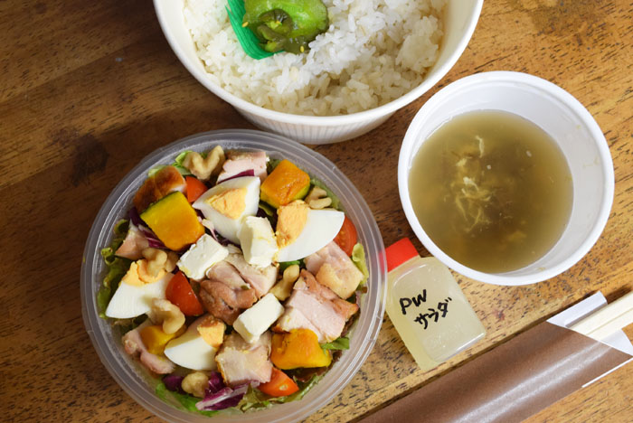 昨日は、チキングリルのサラダ、スープ付き。