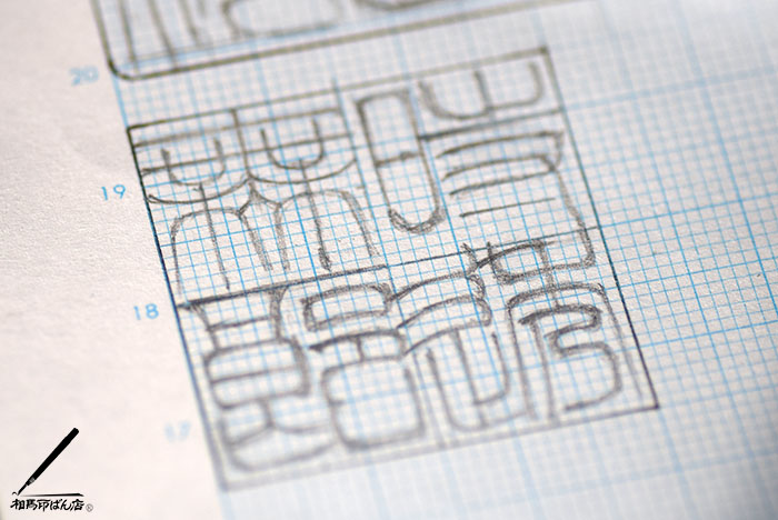 日曜日にキマッタさんに辞書のページを事前に調べて貰ったので、サクッと辞書を広げ文字を拾いながら草稿を書いて大まかな骨格を描き字入れを始めました。