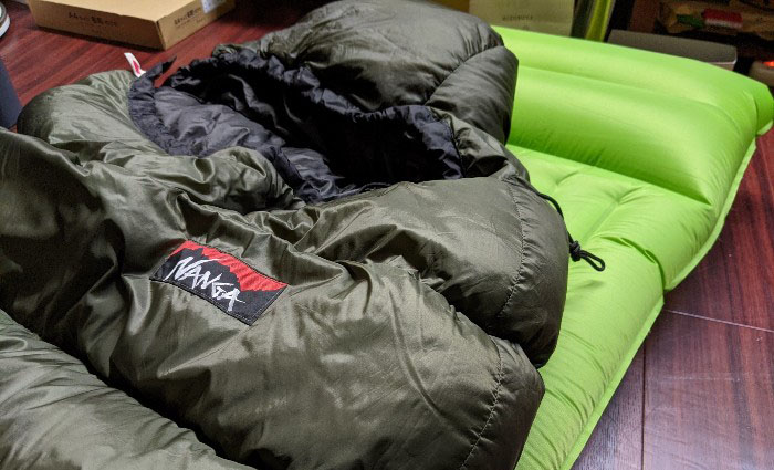 ダウン量350gという薄いシュラフでもエアマットがあれば18℃以上だと問題なく寝れます。 18℃以下になると二層のパンツや、ダウンジャケットを着こんで寝る事となります。そうなったらモンベル#1の登場ですがw